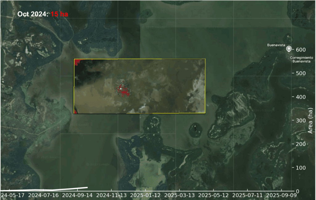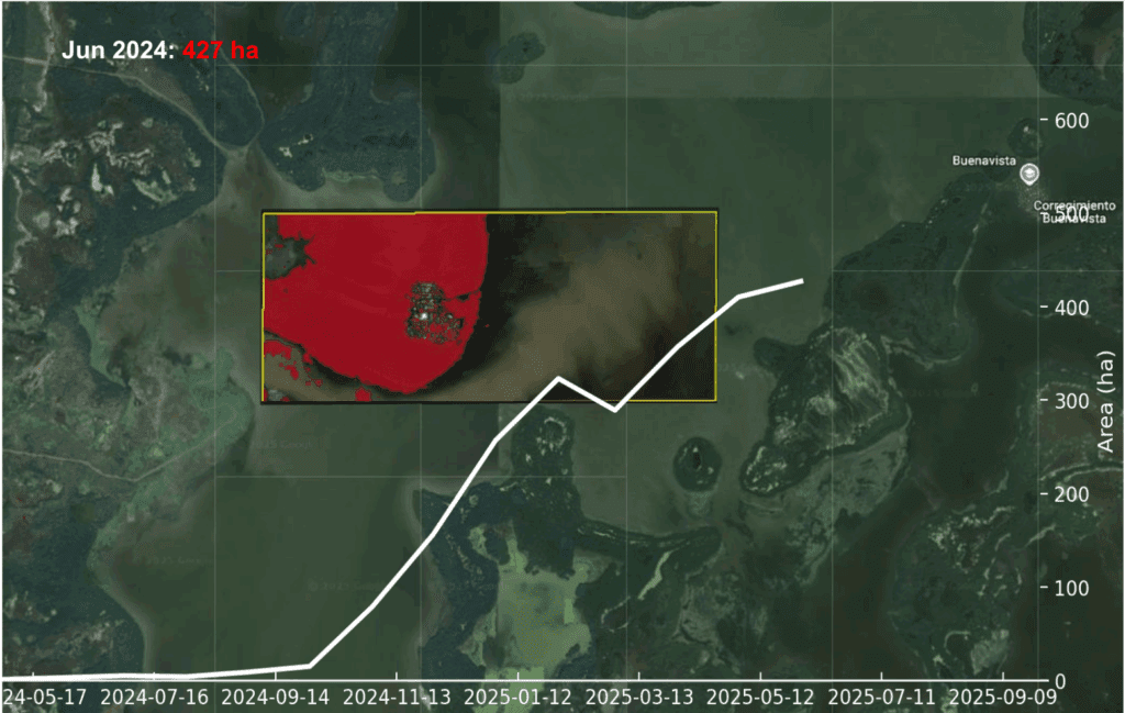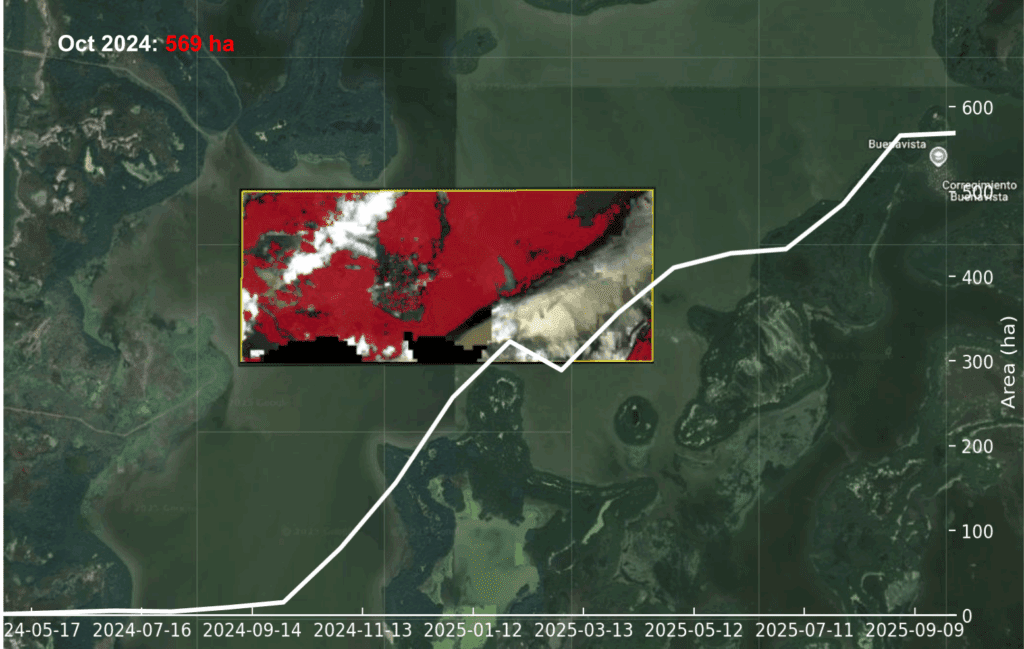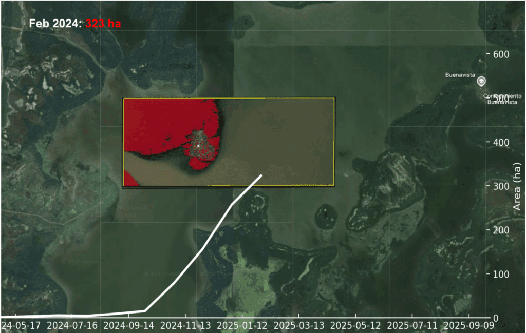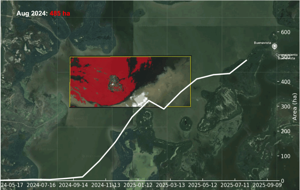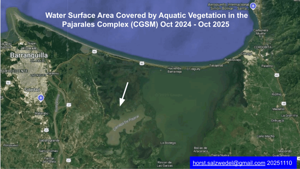 Water Surface Area Covered by Aquatic Vegetation in the Pajarales Complex (CGSM) Oct 2024 – Oct 2025 https://docs.google.com/presentation/d/1Vh3q8sXkEGkjPlRoBNh73luoTfQ5jALXhJKHRV1hXgs/edit?usp=sharing 10/noviembre/2025 por admin Hydrilla verticillata Noticias